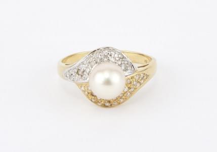 3217. Bague sertie d'une perle rehaussée de diamants