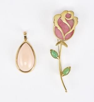 3266. Lot d'un pendentif serti d'un cabochon de corail rose et d'une b...