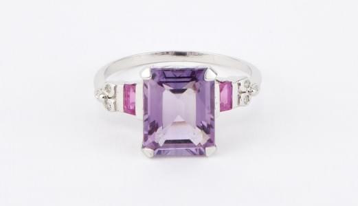 3270. 7110*Bague sertie d'une améthyste taille rectangle (env. 2,5 ct)...