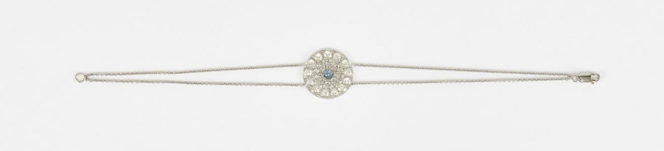 3287. Bracelet retenant un motif centré d'un saphir entouré d'un pavag...
