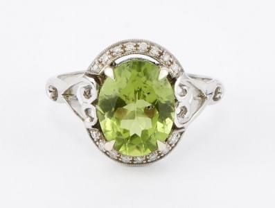 3296. 7111*Bague sertie d'un péridot taille ovale (env. 2,7 ct) entour...