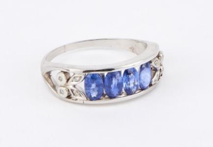 3298. 7108*Anneau ajouré serti de quatre saphirs taille ovale rehaussé...