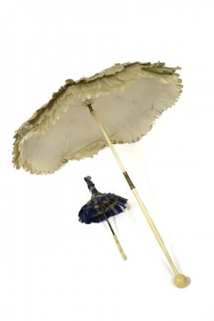 A décor de drapés et motifs floraux, bois, corne et tissu, H 21...