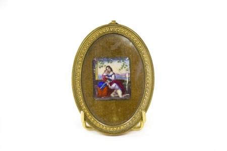 3392. La vierge à la grappe, plaque Limoges, XIXe s
