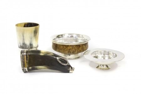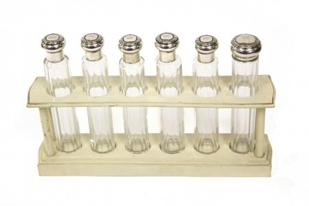 Métal argenté, argent et verre taillé, H 27 et 9 cm