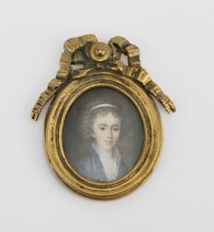 Jeune femme au bandeau blanc, monture postérieure à motif de rub...