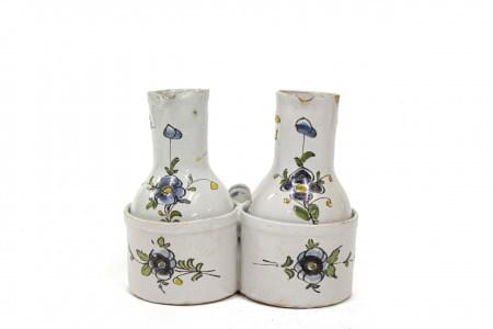 Faïence émaillée polychrome à décor de fleurs, H 15 cm