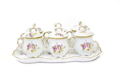 3441. Six pots à crème sur présentoir à décor de fleurs polychromes