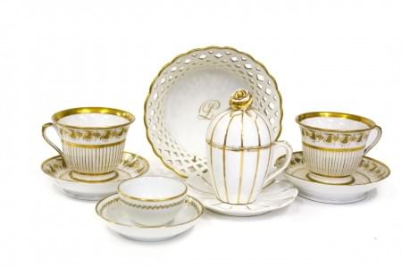Porcelaine blanche et or, XIXe s, Paris et Allememagne (5p)