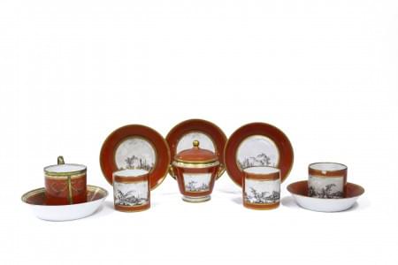 Porcelaine de Paris, comprenant: théière, cafetière, crémier, su...