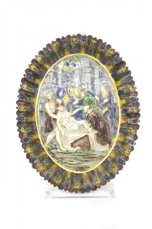 Faïence émaillée polychrome à décor en bas-relief figurant la dé...