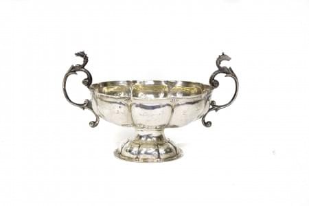 3487. Timbale à décor de rinceaux et médaillon monogrammé