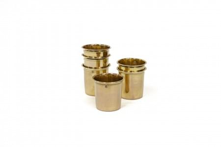 3421. 6 tasses à liqueur sur présentoir à bordure bleu ciel