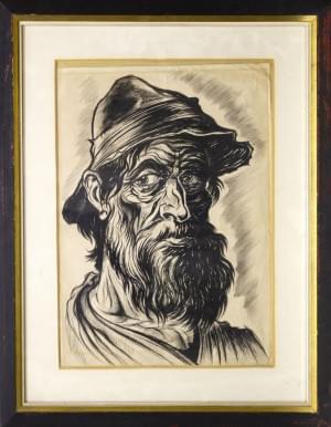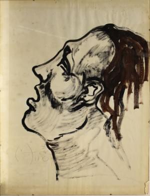 Portrait d'homme barbu, encre de chine sur papier, 45x33 cm