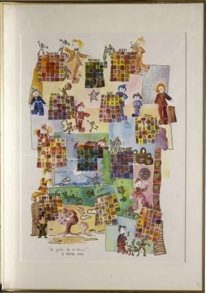 Le jardin des 12 clowns, aquarelle sur papier, signée et datée 1...