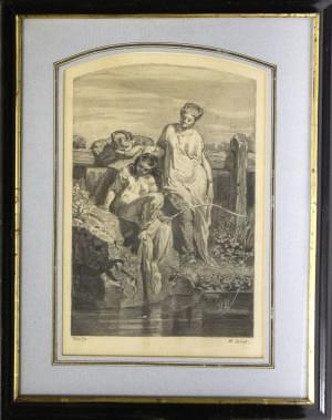 Jeunes femmes au bord de l'étang, mine de plomb sur papier, 25x1...