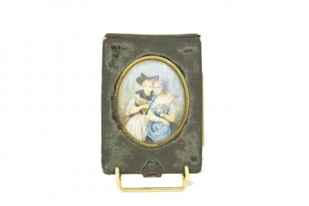 3822. Carnet de bal orné d'une miniature avec deux alsaciennes