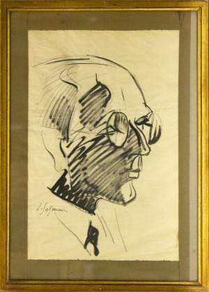 Portrait d'homme avec lunettes, mine de plomb et encre sur papie...