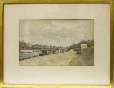 Vue de Paris, aquarelle sur papier, signée G.Adam, 18,5x31 cm