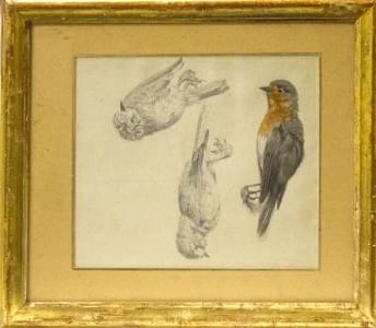 Etude de rouge-gorge, mine de plomb et crayon de couleurs sur pa...