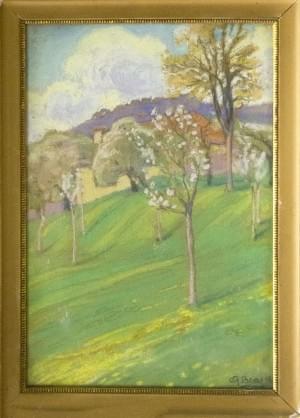 Sous les arbres, gouache et crayon, signé et daté 1904, 41x30 cm