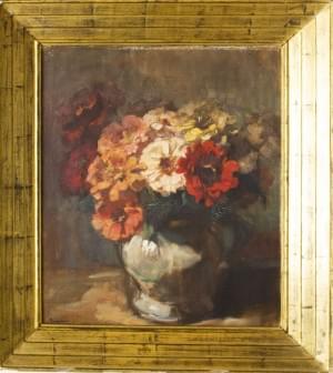 Bouquet de fleurs, huile sur toile, 69x61 cm