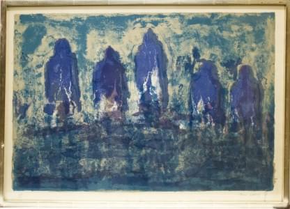 Silhouettes en bleu, gravure en couleur, signée et numérotée 24/...
