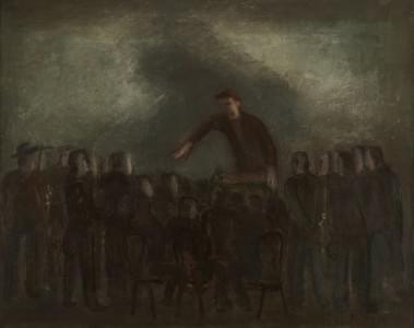 Assemblée politique, huile sur toile, signée et datée 42, 65x82...
