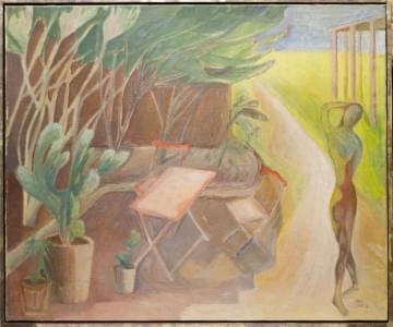 La terrasse, huile sur toile, signée et datée 51, 74x89 cm