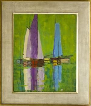 Navires, huile sur toile, signée Greg et datée 60, 41x34 cm