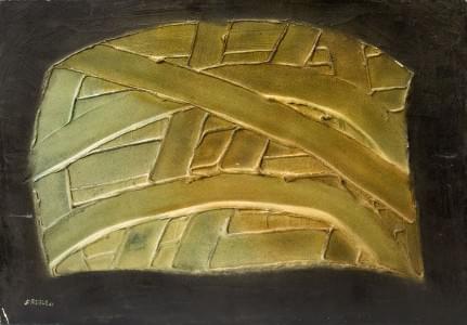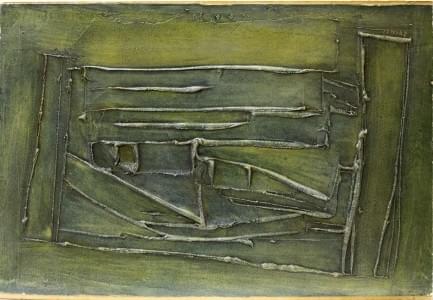 Abstraction verte, technique mixte sur carton, signée J.Casals e...