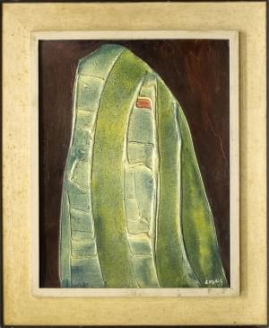 Abstraction verte sur fond noir, technique mixte sur carton, sig...