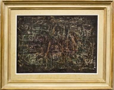 Abstraction noire, technique mixte sur carton, signée J.Casals e...
