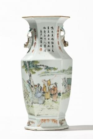 Porcelaine à décor de personnages, paysage et calligraphie, circ...