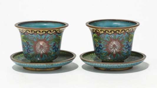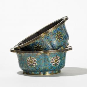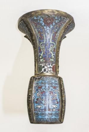 Bronze à décor émaillé cloisonné sur fond turquoise, Chine, H 19...