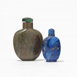 L'une en lapis lazuli à inclusions or, l'autre en jaspe, Chine,...