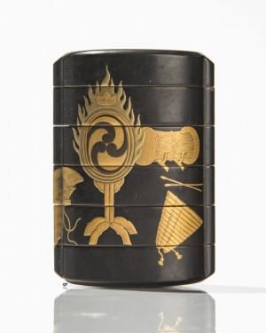 Laque noire et or à décor d'instruments de musique, H 8,5 cm