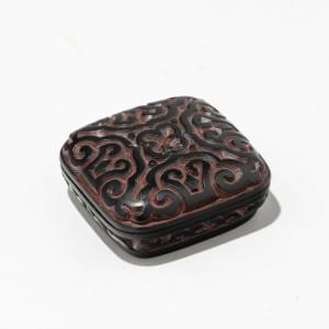 Laque rouge et noire à décor en relief de motifs géométriques, J...