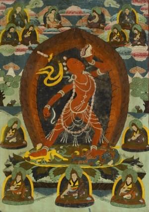 869. Grande peinture sur soie à décor de bouddha et acolytes