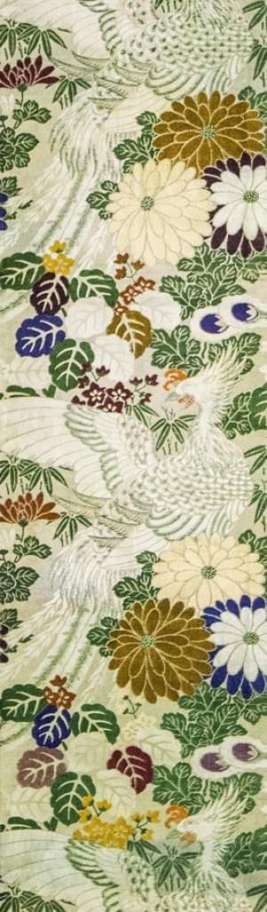 Soie brodée à décor floral et feuillagé, Japon, Xxe s, 32x398 cm