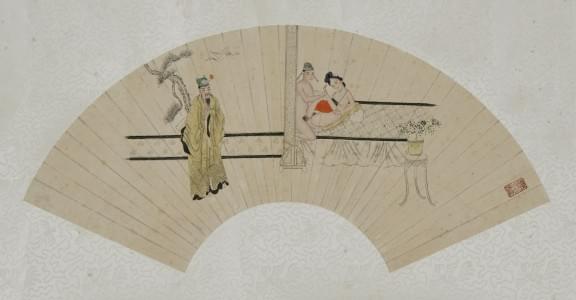 Deux scènes érotiques, aquarelle et encre sur papier en forme d'...