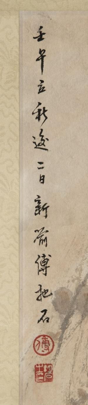 Soie figurant Lu Xing (richesse), Shou Xing (longévité) et Fu X...