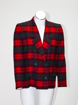 Veste à carreaux écossais en cachemire et laine aux tons rouges...