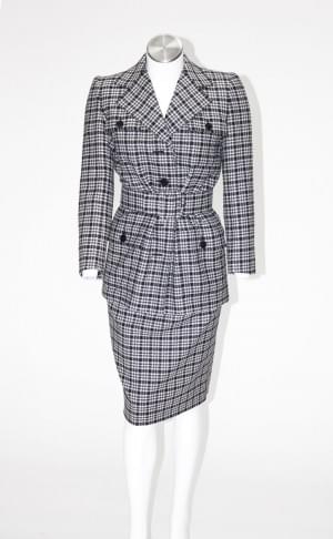 Tailleur-jupe en laine noire et blanche, doublure intérieure en...