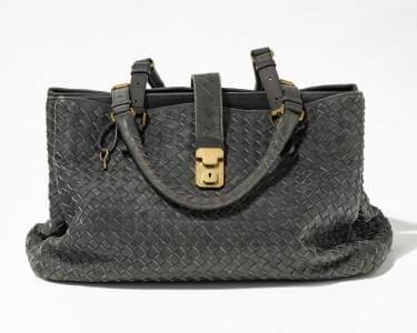 Sac à main en cuir tressé anthracite, trois compartiments, doubl...