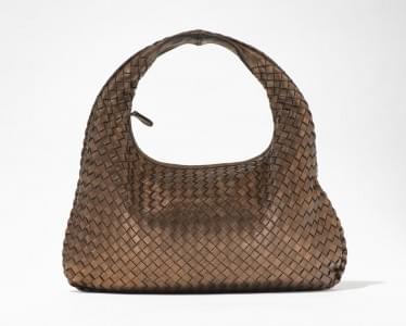 Sac à main tressé cuir bronze, intérieur en daim, fermeture Ecla...