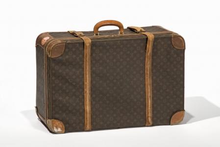 Toile enduite monogrammée et cuir, 53x80x28 cm