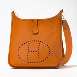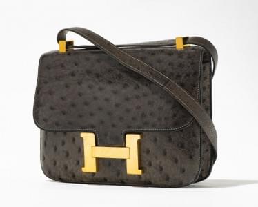 Cuir d'autruche gris, fermoir H en métal doré, bandoulière perme...
