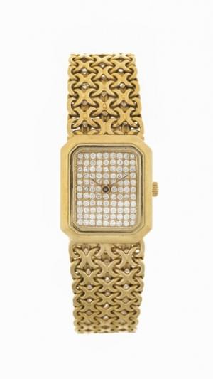 Lunette sertie de diamants, cadran à fond blanc, chiffres arabes...