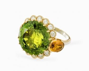 279. Bague solitaire sertie d'un saphir jaune (env. 2 ct) entouré de...